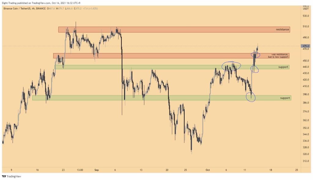 “$BNB menghormati level support dan resistance seperti yang ditunjukkan pada grafik. Jika zona support saat ini terus bertahan, harga kemungkinan akan berlanjut hingga ~$500."