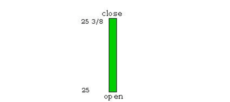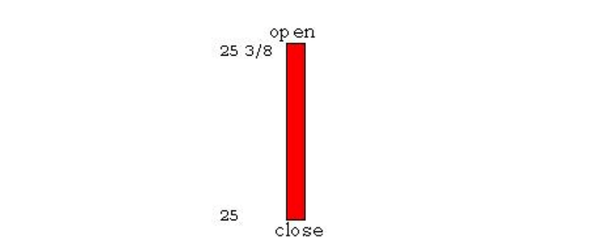 Hasilnya adalah kandil merah dengan harga pembukaan 25 3/8, jatuh ke harga penutupan 25.