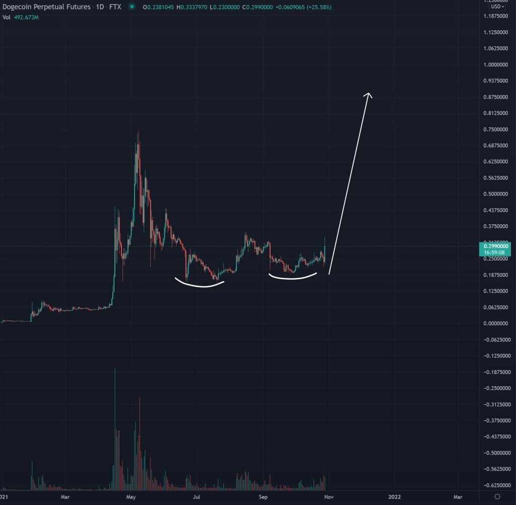 Analis pseudonim Smart Contracter memberi tahu 176.700 pengikut Twitternya bahwa dia melihat Dogecoin meluncurkan lonjakan kuat ke $1,00, menandai potensi keuntungan lebih dari 270% dari nilainya saat ini $0,27.