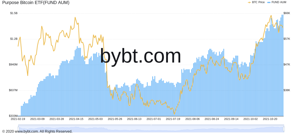 Tujuan aset ETF Bitcoin yang dikelola vs. grafik BTC/USD.