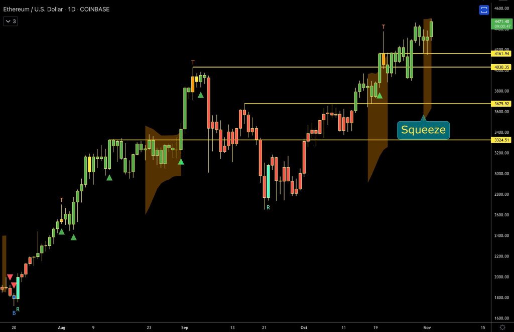 Wik berkata,“Ethereum terus membuat ATH baru. Mereka yang telah menunggu selama berbulan-bulan bersama kami benar-benar layak mendapatkan ini… Secara teknis, kami memiliki naungan Squeeze lainnya. Hati-hati dengan pelarian lain segera! ”
