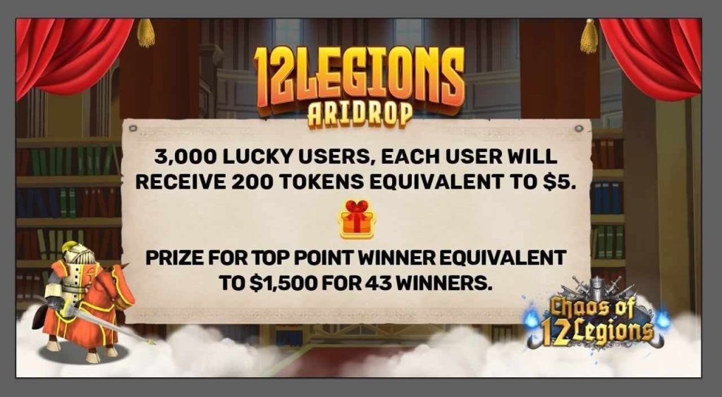 Hadiah airdrop untuk 3.000 Pengguna Beruntung. Setiap pengguna yang beruntung akan menerima 200 token yang setara dengan $5.