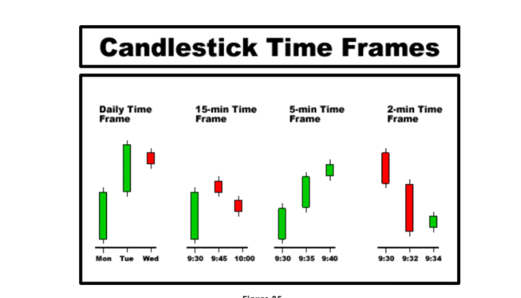 Salah satu atribut indah dari garis kandil adalah bahwa analisis yang sama dapat diterapkan pada beberapa kerangka waktu. Kerangka waktu garis kandil adalah durasi waktu antara harga pembukaan kandil dan harga penutupan. Misalnya, grafik candlestick harian akan terdiri dari garis candlestick dengan harga pembukaan sesuai dengan harga pembukaan hari itu, dan harga penutupan sesuai dengan hari itu