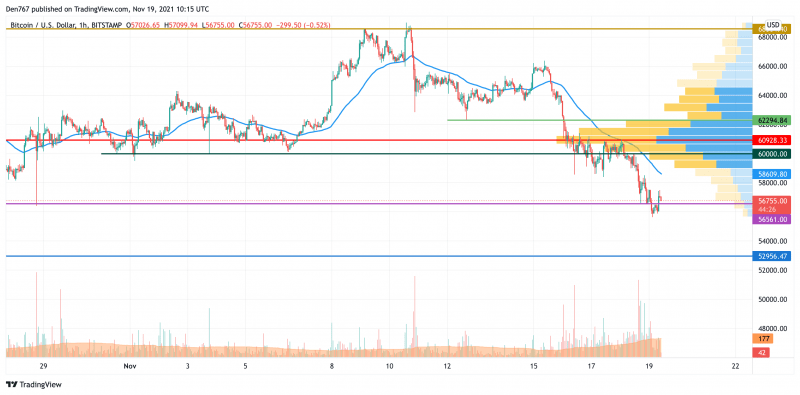 Kemarin, tekanan bearish meningkat dan harga Bitcoin kembali ke support $58,000. Volume penjualan cukup besar, dan penurunan berhasil menembus dukungan ini, menetapkan minimum lain pada titik $56.565.