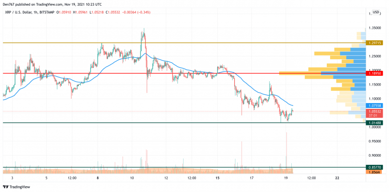 Kemarin, harga XRP ditarik kembali ke level $1 per koin, menetapkan level terendah harian di $1,016.