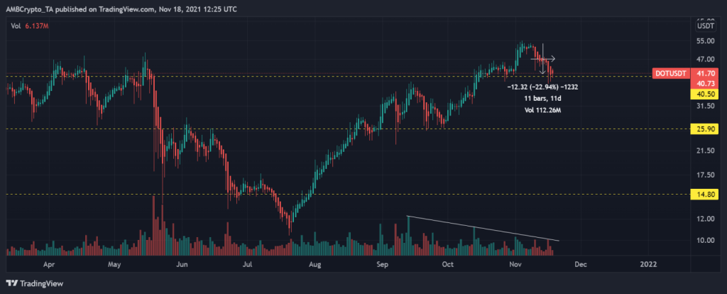 Khususnya, volume perdagangan DOT, terlepas dari ATH baru-baru ini, tidak sesuai dengan level awal September.