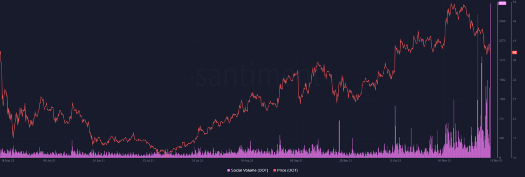 Polkadot, di sisi lain, telah berkumpul di belakang antisipasi seputar lelang slot parachain-nya. Pada saat penulisan juga, DOT melihat volume sosial yang tinggi meskipun ada penurunan harga 20% selama seminggu terakhir.