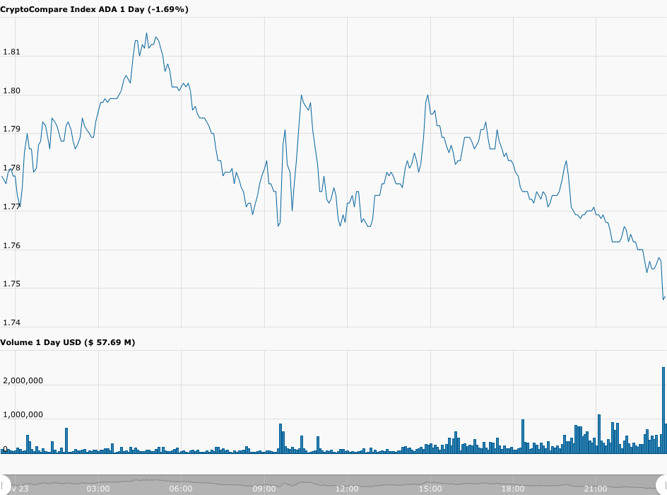 Menurut data oleh CryptoCompare, $ADA saat ini (per 23:30 UTC pada 23 November) diperdagangkan sekitar $1,748, turun 1,69% dalam periode 24 jam terakhir.