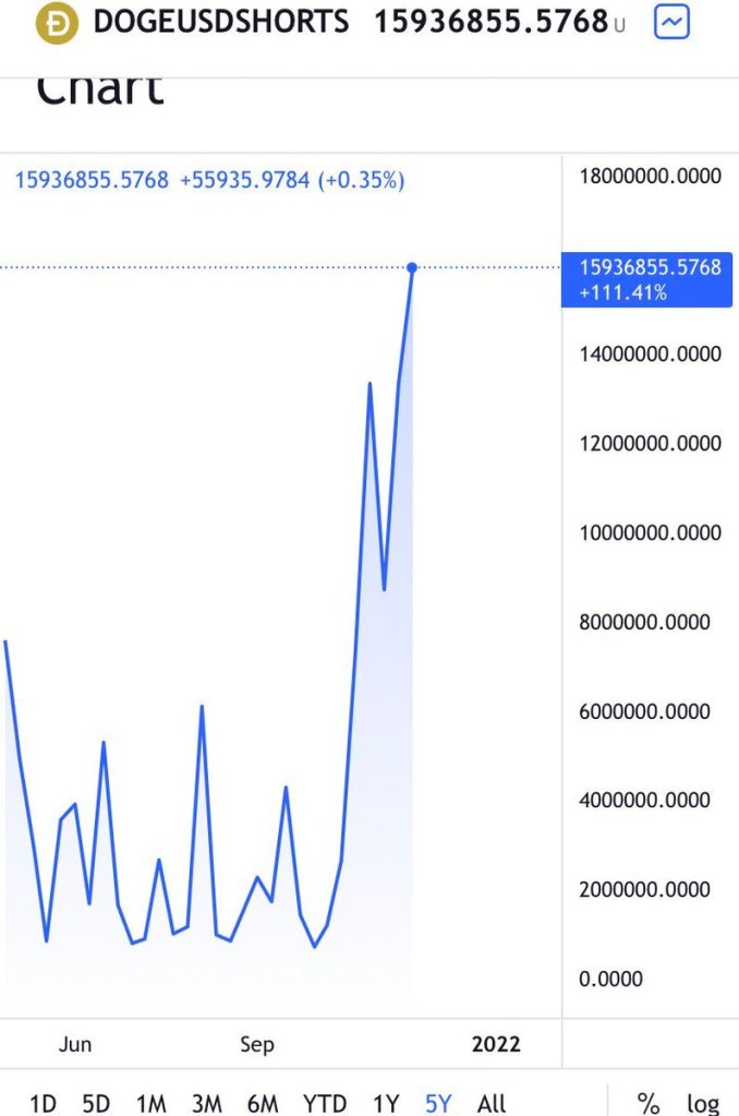 Jumlah posisi pendek Dogecoin bermargin di Bitfinex, salah satu pertukaran crypto terbesar, mencapai 15,9 juta DOGE, yang kira-kira setara dengan $3,4 juta.