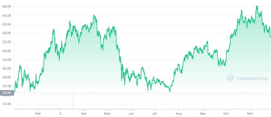 Perbedaan mencolok antara nilai Bitcoin pada awal tahun 2021 dan nilai saat ini adalah bahwa Bitcoin diperdagangkan pada $55.223 pada saat penulisan, mewakili pengembalian investasi 88% untuk Bitcoin sejak awal tahun ketika diperdagangkan pada $29.286.