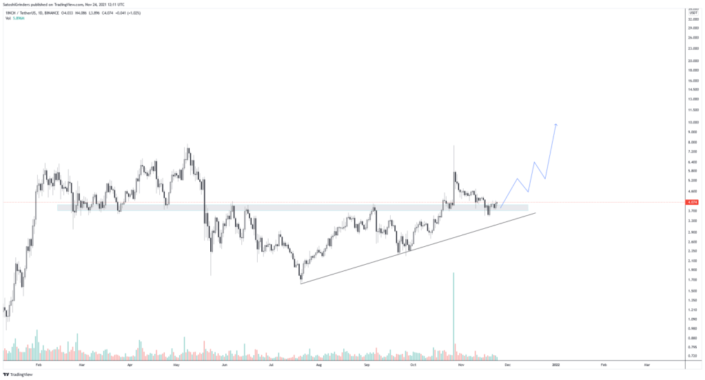 Meskipun 1INCH telah jatuh di bawah area $4, grafik jangka pendek masih tampak bullish.