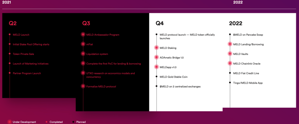 “MELD menawarkan keuntungan efisiensi modal yang signifikan dalam pinjaman dan pinjaman dibandingkan dengan solusi blockchain terpusat dan fintech tradisional. Berjalan di blockchain generasi ketiga, MELD mewarisi fitur Cardano termasuk biaya transaksi rendah, throughput tinggi dan Cardano 10 memiliki lebih dari $50 miliar keamanan bertumpuk yang dipertaruhkan di dalam blockchain.