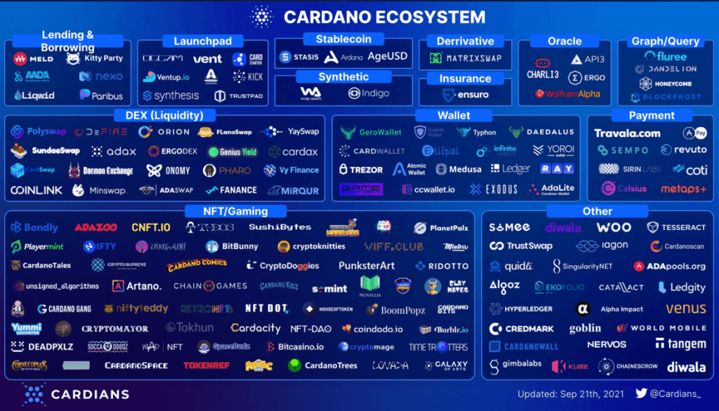 Menjelang peluncuran Alonzo, banyak proyek dApp telah maju untuk mengumumkan niat mereka untuk membangun di Cardano. Nama-nama terkenal termasuk Liqwid, Charli3, Adax, dan SundaeSwap, untuk beberapa nama.