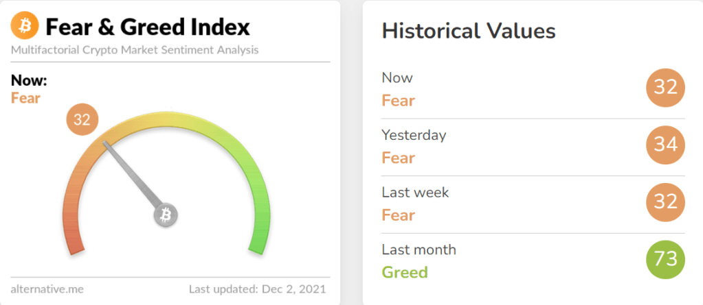 Kenaikan FUD yang tiba-tiba ini juga menyebabkan pasar Bitcoin tergelincir ke tingkat ketakutan selama dua minggu berturut-turut. Dan akibatnya, sekali lagi, pemulihan dari penurunan 8,82% pada 26 November tidak melihat pemulihan.