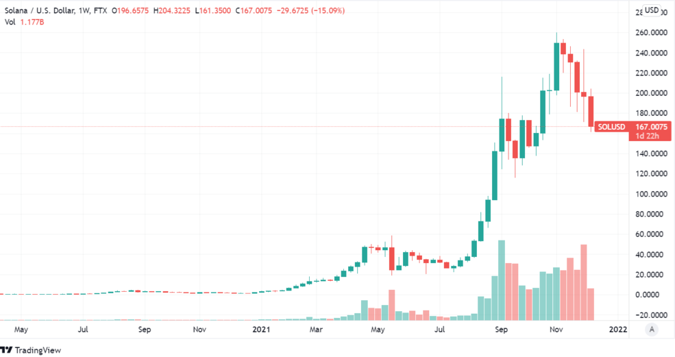 Sementara itu, tren harga Solana tidak bereaksi terhadap berita tersebut, mempertahankan lintasan bearish yang dimulai pada awal November tepat setelah ATH-nya. SOL, token asli Solana, menutup hari di $166,97 dengan penurunan 7,86%. Pada saat penulisan, harga telah terkoreksi menjadi $169,21, yang masih hampir 35% di bawah ATH dan penurunan 14% dalam kinerja mingguan.