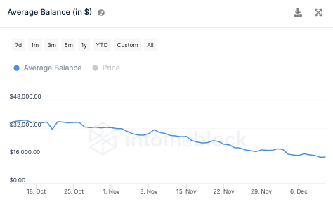 Sentimen pasar yang terkait dengan Cardano juga tidak terlalu optimis, pada saat analisis ini. Saldo rata-rata HODLer, misalnya, telah menyusut lebih dari setengahnya sejak pertengahan Oktober.