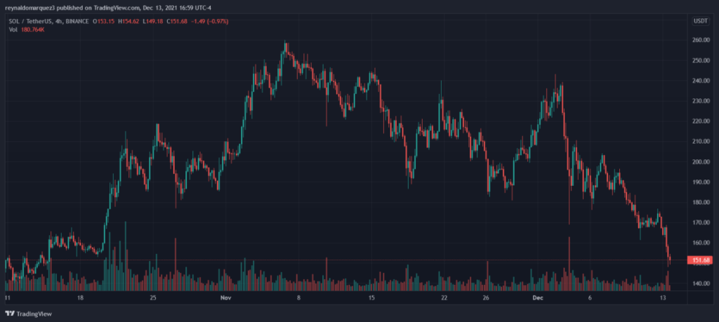 Pada waktu pers, Solana (SOL) diperdagangkan pada $ 151 dengan koreksi 13,1% pada hari terakhir.