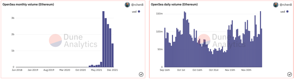 Volume OpenSea telah meningkat kembali sejak awal Desember setelah mengalami penurunan di bulan November.