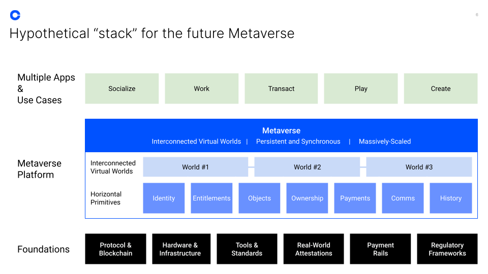 Coinbase telah mengumumkan niat untuk mengerjakan paket jaringan pipa infrastruktur holistik untuk metaverse dengan memberikan beberapa petunjuk tentang beberapa produk dalam pengembangan.