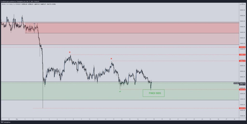 “Ada sapuan dari posisi terendah kami yang saya cari. Terendah menyapu, Bitfinex menawar pada $ 45.000 hit. Sekarang pikir kami jelas untuk bantuan kami menjadi $ 55.000+. ”