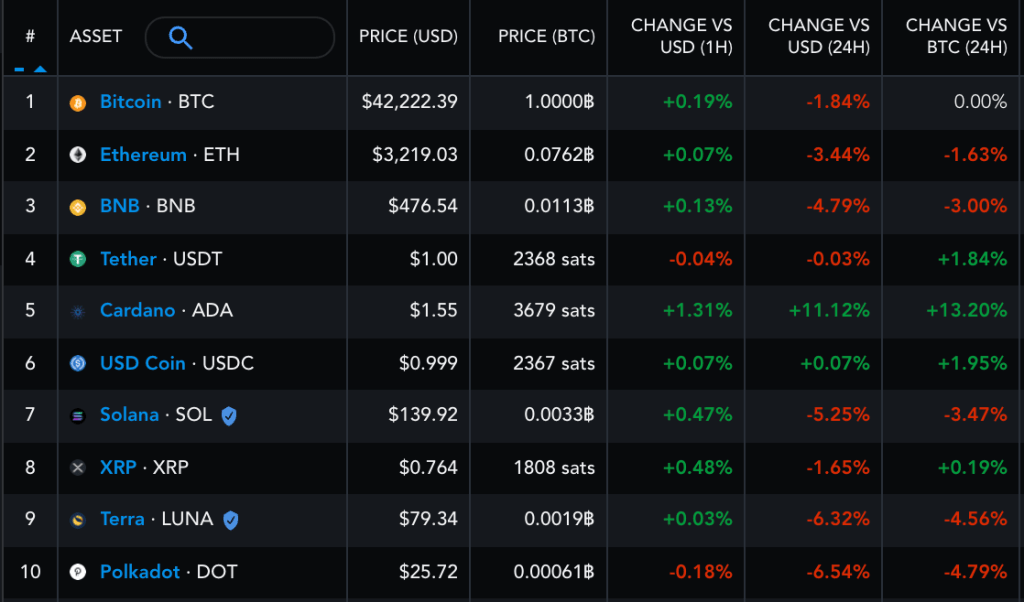 ADA awalnya mengikuti pembalikan pasar crypto, tetapi kemudian melanjutkan momentum kenaikannya sendiri setelah mengambil isyarat dari euforia seputar peluncuran SundaeSwap DEX pada 20 Januari. Akibatnya, ADA muncul sebagai salah satu pemain terbaik di antara sepuluh besar. cryptocurrency berdasarkan kerangka waktu yang disesuaikan selama 24 jam.