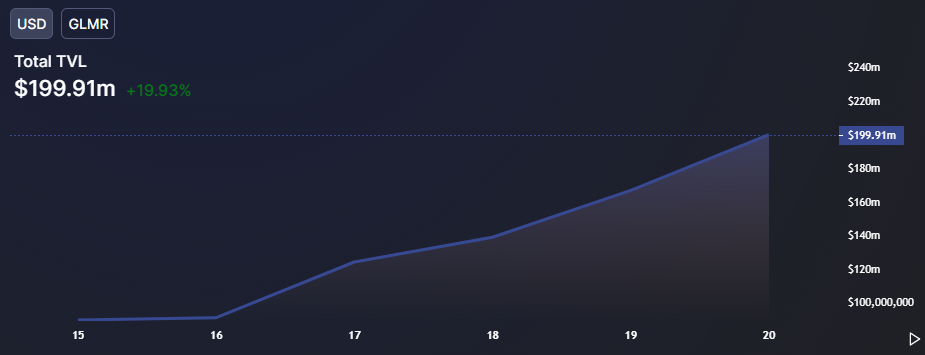 Sebagai hasil dari peluncuran beberapa protokol di Moonbeam, total nilai terkunci (TVL) pada jaringan mencapai hampir $200 juta selama minggu pertama live di mainnet Polkadot.
