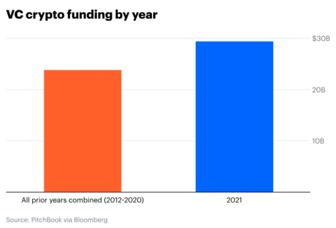 Selanjutnya, bursa menyoroti bahwa pertumbuhan sektor cryptocurrency dikaitkan dengan aliran masuk modal ke ruang angkasa yang terutama didorong oleh institusi. Sepanjang tahun 2021, sektor cryptocurrency menarik $30 miliar dari pendanaan ventura, lebih banyak dari tahun-tahun sebelumnya.