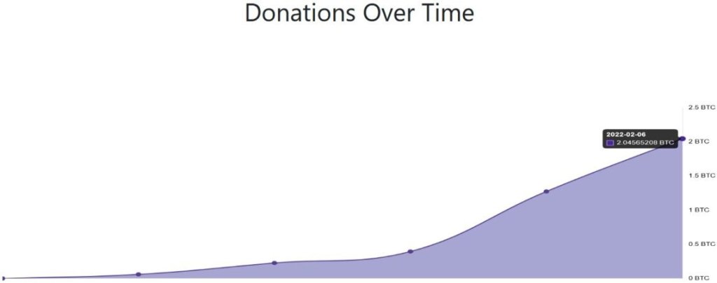 Sebuah akun bernama Honk Honk Hold telah memperbarui kemajuannya, kampanye telah mengumpulkan lebih dari 2 Bitcoin dalam waktu kurang dari tiga hari dengan sasaran 5 BTC. Lebih dari 2.000 kontributor terus-menerus mengirimkan donasi dengan pesan, seperti “Maaf tidak menyesal Menteri Trudeau” atau “KEBEBASAN!”.